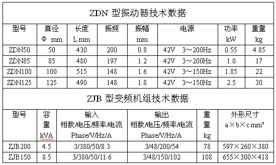 1、高頻振動(dòng)棒型號分為ZDN50、ZDN85、ZDN100。這3種振動(dòng)棒需要和配套的ZJN150和ZJB200的變頻機(jī)組使用,不能直接接電使用。